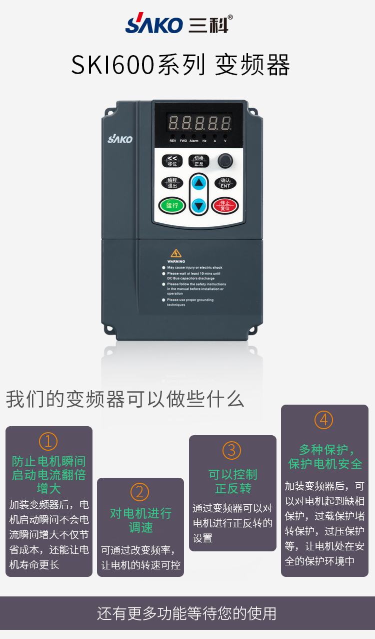 三科變頻器技術(shù)領(lǐng)先,環(huán)保節(jié)能,可搭配變頻柜廣泛應(yīng)用在風(fēng)機(jī)、水泵、空壓機(jī)、注塑機(jī)、卷繞機(jī)、中央空調(diào),紡織機(jī)、化工、冶金、礦業(yè)、制藥、陶瓷、造紙、油田、塑料、印刷、熱電、煙草、食品等各類機(jī)械設(shè)備中。