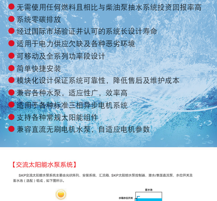應(yīng)用行業(yè):廣泛應(yīng)用于陽光充足、市電短缺的地區(qū),可以解決農(nóng)場灌溉、畜牧養(yǎng)殖、生產(chǎn)生活的用水問題