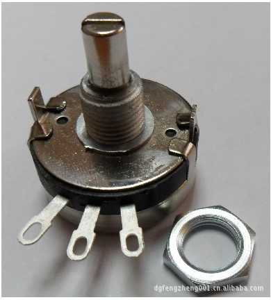 用于分壓電路的可變性電阻器。在外露的電阻器上,一個(gè)或兩個(gè)可移動(dòng)的金屬觸點(diǎn)被壓緊。觸點(diǎn)部位明確電阻體任一端與觸點(diǎn)間的電阻值。按原材料分線繞、碳膜、實(shí)芯式電位器;按輸出與鍵入電壓比與轉(zhuǎn)動(dòng)視角的關(guān)聯(lián)分直線型電位器(呈線性相關(guān))、函數(shù)電位器(呈曲線圖關(guān)聯(lián))?;緟?span style="text-indent:2em;">數(shù)為電阻值、容時(shí)容差、最大功率。普遍用于電子產(chǎn)品,在音箱和接收器中作音量用。