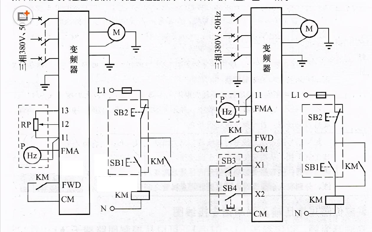 外接頻率設(shè)置電位器接線方法(a)接線方法(一);(b)接線方法(二)