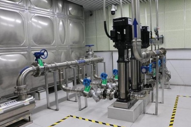 特點:有備用保壓水箱,直接與市政管網(wǎng)連接通過變頻柜控制,可以充分利用市政管網(wǎng)余壓,自動加壓供水,既能儲水又能保壓,還能凈化水,可直接飲用。