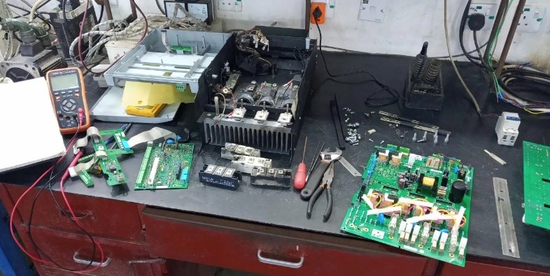 針對(duì)過流毛病,檢修辦法為:毛病檢查時(shí)應(yīng)首先斷開負(fù)載對(duì)VFD停止檢查,假如斷開負(fù)載后,過電流毛病仍然存在,闡明VFD內(nèi)部元件毛病,需進(jìn)一步檢查維修。