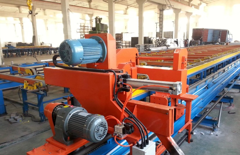 某地一家專業(yè)從事鋁型材加工生產(chǎn)的企業(yè),其生產(chǎn)車間內(nèi)的牽引系統(tǒng)主要是由觸摸屏、PLC與杭州三科的SKI600系列重載變頻器組成。牽引機(jī)作為鋁型材生產(chǎn)中的一種重要設(shè)備,在生產(chǎn)中需要配合擠壓機(jī)的擠出速度將鋁材原料從擠壓機(jī)模具腔中平直地牽引出來(lái)。牽引系統(tǒng)采用恒張力控制,以保證型材的直線度,防止型材扭曲,并減少型材表面的損傷,提高型材的成材率和品質(zhì)。