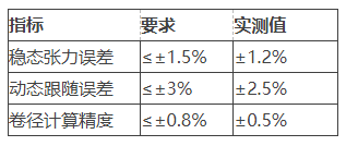 驗(yàn)證卷徑計(jì)算準(zhǔn)確性(誤差<±1%)