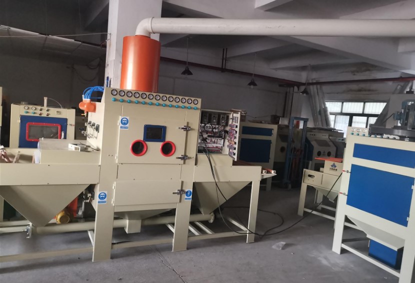 異型打磨噴砂機(jī)是一種利用噴槍吹出的高速運(yùn)動(dòng)的顆粒物體,通過(guò)氣流的高速動(dòng)能,在噴槍內(nèi)部形成負(fù)壓,將磨料通過(guò)輸送管吸入噴砂槍,再通過(guò)噴嘴噴出,達(dá)到所期望的加工效果。該設(shè)備的整體工藝流程如下:板件輸送、管道吹塵、噴槍組動(dòng)作、除塵輥去塵、砂料調(diào)整。