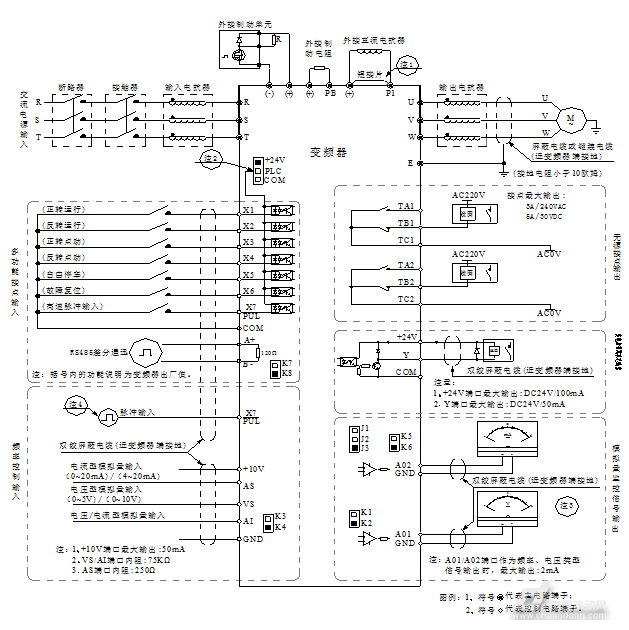 3、模擬量監(jiān)視輸出為頻率表、電流表、電壓表等指示表專用的輸出,不能用于反饋控制等控制類操作。