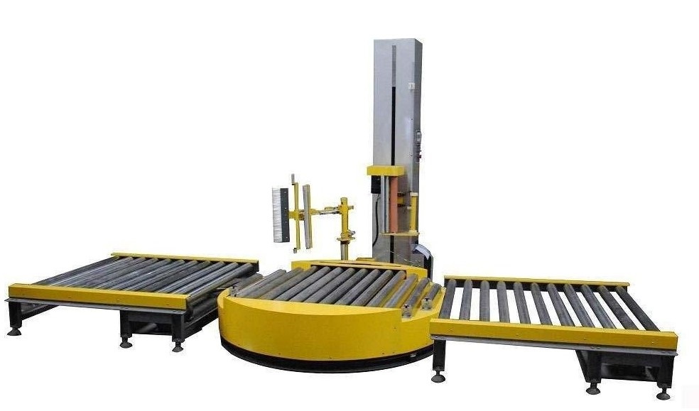 它主要由機架、光電開關、觸摸屏、SKI600組成。其工作原理是將被纏繞物體放置于轉(zhuǎn)盤中央,啟動轉(zhuǎn)盤電機轉(zhuǎn)動,自然地帶動轉(zhuǎn)盤轉(zhuǎn)動,使物體實現(xiàn)了外圍的纏繞。與此同時升降機電機也啟動,帶動纏繞膜做上下運動,達到物體高度方向的纏繞,這就實現(xiàn)了物體整個外表的纏繞包裝。