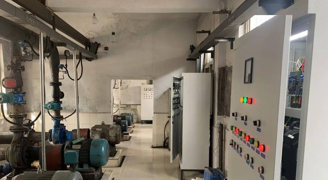 某地電廠的綜合泵房共有9臺水泵,其中有3臺工業(yè)水泵,2臺消防穩(wěn)壓泵,2臺消防泵,2臺生活水泵。而工業(yè)水泵承擔(dān)著我公司兩臺5萬KW汽機,兩臺額定蒸發(fā)量220T/H鍋爐生產(chǎn)用水的供水任務(wù),工業(yè)水泵的型號:250SSK468/54,流量:468m3/h,揚程54米,轉(zhuǎn)速1470 r/min,配用功率110KW;配用電機型號Y315S-4B3,電壓380V,電流201A,轉(zhuǎn)速1480 r/min.建廠初期由于設(shè)計問題,全部采用工頻運行。為了保證生產(chǎn)的可靠性,各種水泵在設(shè)計配用動力驅(qū)動時,都留有一定的富余量。電機不能在滿負荷下運行,除達到動力驅(qū)動要求外,多余的力矩增加了有功功率的消耗,造成電能的浪費,