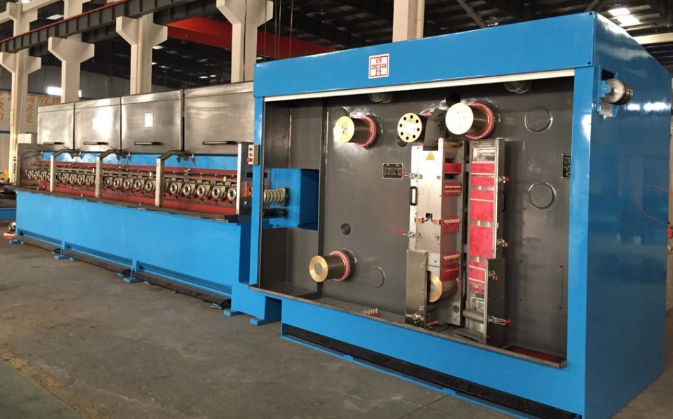 隨著工業(yè)化在中國的不斷發(fā)展,在如今的線材加工中的拉絲機也越發(fā)的關(guān)鍵。尤其是在鋼絲、銅絲、塑料、竹筷、木材、電線電纜等行業(yè)中的使用也越發(fā)的廣泛。拉絲機我們可以根據(jù)其用途分為:金屬拉絲機、塑料拉絲機、竹木拉絲機等;以拉伸方式可分為直進式、水箱式等,以線徑粗細又可分為大拉機、中拉機、細拉機和微拉機等,都由拉絲伸線和收線兩部分組成。為提高線纜的產(chǎn)量、質(zhì)量和降低成本,拉絲機一般改為雙變頻或多變頻恒張力控制。下面我們將介紹變頻水箱拉絲機的應用方案。