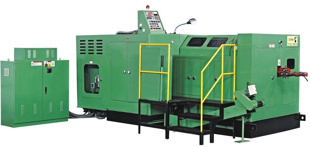 采用冷拉銅,鋁絲,鐵絲等自動(dòng)冷鐓,是生產(chǎn)抽心鋁鉚釘,半空心鐵鉚釘?shù)膶?zhuān)用設(shè)備。該機(jī)的全部結(jié)構(gòu)從校直,選料,切割二次成形至落料全部自動(dòng)進(jìn)行,具有成形標(biāo)準(zhǔn)穩(wěn)定,加工品種多等優(yōu)點(diǎn)。