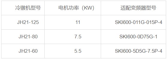 通過(guò)對(duì)冷鐓機(jī)應(yīng)用,在滿足工藝要求的同時(shí),也提高了運(yùn)行生產(chǎn)的效率,較以更為省時(shí)省力。而在沒(méi)有應(yīng)用變頻器之前,設(shè)備若直接起動(dòng)的話,在啟動(dòng)的瞬間會(huì)產(chǎn)生巨大的剪切力,很容易造成設(shè)備的損傷。使用變頻器以后設(shè)備故障率降低,同時(shí),也減少設(shè)備的維護(hù)費(fèi)用。更重要的一點(diǎn)是,因?yàn)樵O(shè)備工作在30-50Hz,還有很大的節(jié)能空間,因此,在冷鐓機(jī)可以大力推廣使用變頻。SKI600系列變頻器從問(wèn)世以來(lái),以其優(yōu)越的性能和穩(wěn)定可靠質(zhì)量,廣泛的應(yīng)用在各個(gè)領(lǐng)域,同時(shí),在冷鐓機(jī)上也大量的應(yīng)用。