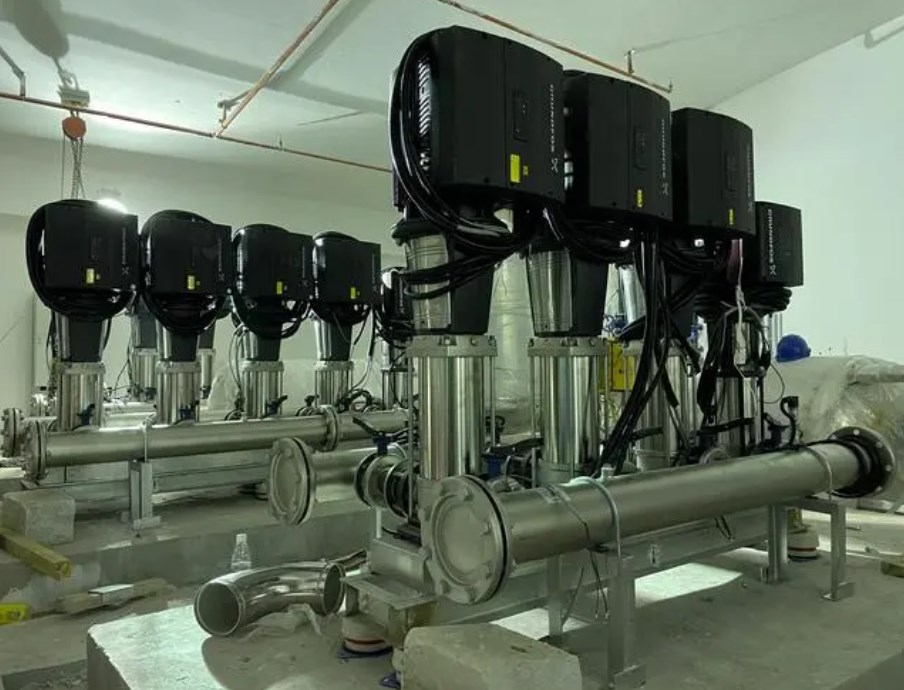 變頻恒壓供水系統(tǒng)以管網(wǎng)水壓或用戶用水流量為設定參數(shù),經(jīng)過微機控制變頻器的輸出頻率從而自動調(diào)理水泵電機的轉速,完成管網(wǎng)水壓的閉環(huán)調(diào)理,使供水系統(tǒng)自動恒穩(wěn)于設定的壓力值:即用水量增加時,頻率升高,水泵轉速加快,供水量相應增大;用水量減少時,頻率降低,水泵轉速減慢,供水量亦相應減小,這樣就保證了供水效率用戶對水壓和水量的請求,同時到達了進步供水質(zhì)量和供水效率的目的,“用幾水,供幾水”;采用該設備不需建造高位水箱,水塔,水質(zhì)無二次污染,是一種理想的現(xiàn)代化建筑供水設備。