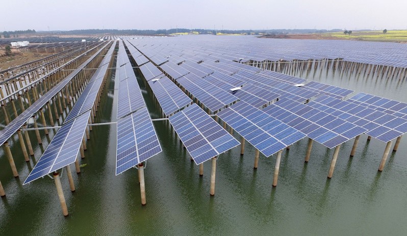 2.“漁光互補”是漁業(yè)文化與光伏發(fā)電的結(jié)合。魚塘水面上方設(shè)置光伏板陣列,光伏板下方水域可進行魚蝦養(yǎng)殖。光伏陣列還能為養(yǎng)魚提供良好的屏蔽效果,形成“上發(fā)電、下養(yǎng)魚”的發(fā)電新模式,可實現(xiàn)養(yǎng)殖與發(fā)電并行,提高綜合產(chǎn)值。