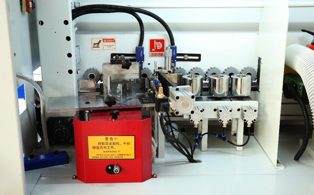全自動(dòng)封邊機(jī)主要包括機(jī)身、各加工部組、控制系統(tǒng)。機(jī)身部分由上下橫梁、底座組成,其中機(jī)身部分關(guān)系到精確度,上下橫梁,關(guān)系到加工板材能否直線運(yùn)行,確保每個(gè)工位的精密運(yùn)行。封邊機(jī)可分為手動(dòng)曲線封邊機(jī)和全自動(dòng)直線封邊機(jī)兩種。標(biāo)準(zhǔn)機(jī)型配置為:只具備齊頭,修邊,刮邊,拋光這四個(gè)主要單元。利用感應(yīng)器檢知工件工位從而完成封邊機(jī)的輸送--涂膠--切斷--前后齊頭--上下修邊--上下精修--上下刮邊--拋光等封邊工序。用戶可根據(jù)自己的實(shí)際情況增加雙修,開(kāi)槽,仿形等工位。