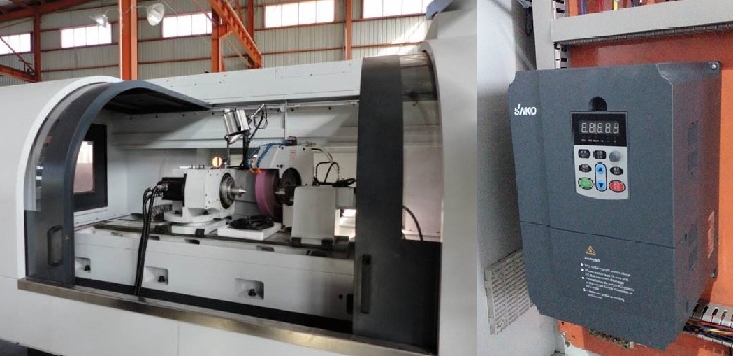 根據(jù)不同的軸桿類直徑的大小,主砂輪電機的轉(zhuǎn)速等于砂輪輸出的轉(zhuǎn)速。磨削力的大小取決于砂輪電機的輸出轉(zhuǎn)矩。在驅(qū)動工件旋轉(zhuǎn)的主軸電機的高速段,相對于砂輪輸出轉(zhuǎn)速不變,所加工的工件直徑小,磨削進給少;加工大直徑,長軸類工件時,工件旋轉(zhuǎn)的電機在低速段,砂輪進給量大,砂輪磨削力也在變大,電機很難在恒轉(zhuǎn)矩/恒速度下運行。速度的變化就產(chǎn)生了如振刀紋/燒糊紋/加工精度等的變化。變頻調(diào)速電機的無級調(diào)速,恒轉(zhuǎn)矩輸出恰能彌補上述缺陷。